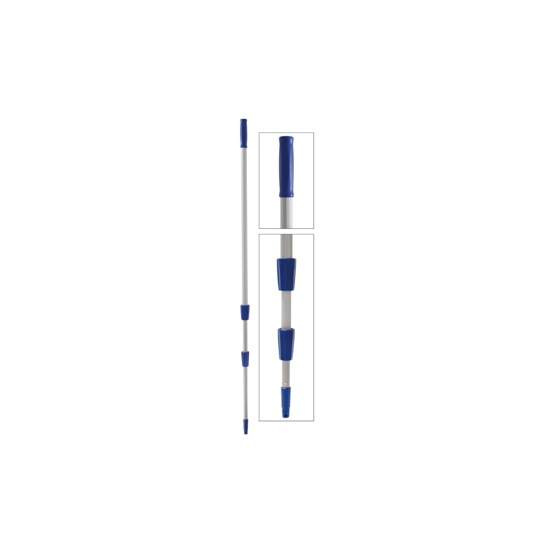 Filmop Kij Teleskopowy 6m to solidny, 3-częściowy kij teleskopowy wykonany z aluminium, osiągający po rozłożeniu łączną długość 6 metrów. Dzięki zastosowaniu aluminium, kij jest bardzo lekki, co znacznie ułatwia pracę, nawet przy maksymalnym wysunięciu. Jego długość 6 metrów pozwala na komfortowe sprzątanie wysoko położonych powierzchni bez konieczności używania drabiny, zwiększając bezpieczeństwo i efektywność.