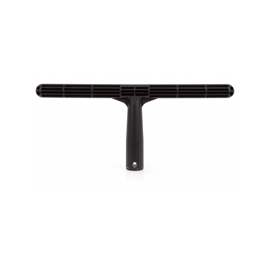 Ten profesjonalny stelaż Filmop wyróżnia się solidną konstrukcją wykonaną z wysokiej jakości kopolimeru polipropylenu. Materiał ten zapewnia nie tylko niewielką wagę, ale także imponującą odporność na uderzenia, uszkodzenia mechaniczne oraz niskie temperatury, gwarantując tym samym długą żywotność produktu. Inteligentnie zaprojektowana podstawa stelaża wyposażona jest w specjalne szczeliny. Umożliwiają one efektywne zatrzymywanie roztworu czyszczącego po zanurzeniu w wiadrze i kontrolowane uwalnianie go na szybę podczas mycia. Dodatkowo, stelaż posiada uniwersalny, stożkowy otwór, który doskonale pasuje do kijów teleskopowych. Takie rozwiązanie umożliwia bezpieczne i komfortowe czyszczenie trudno dostępnych, wysoko położonych miejsc bez konieczności używania drabin.