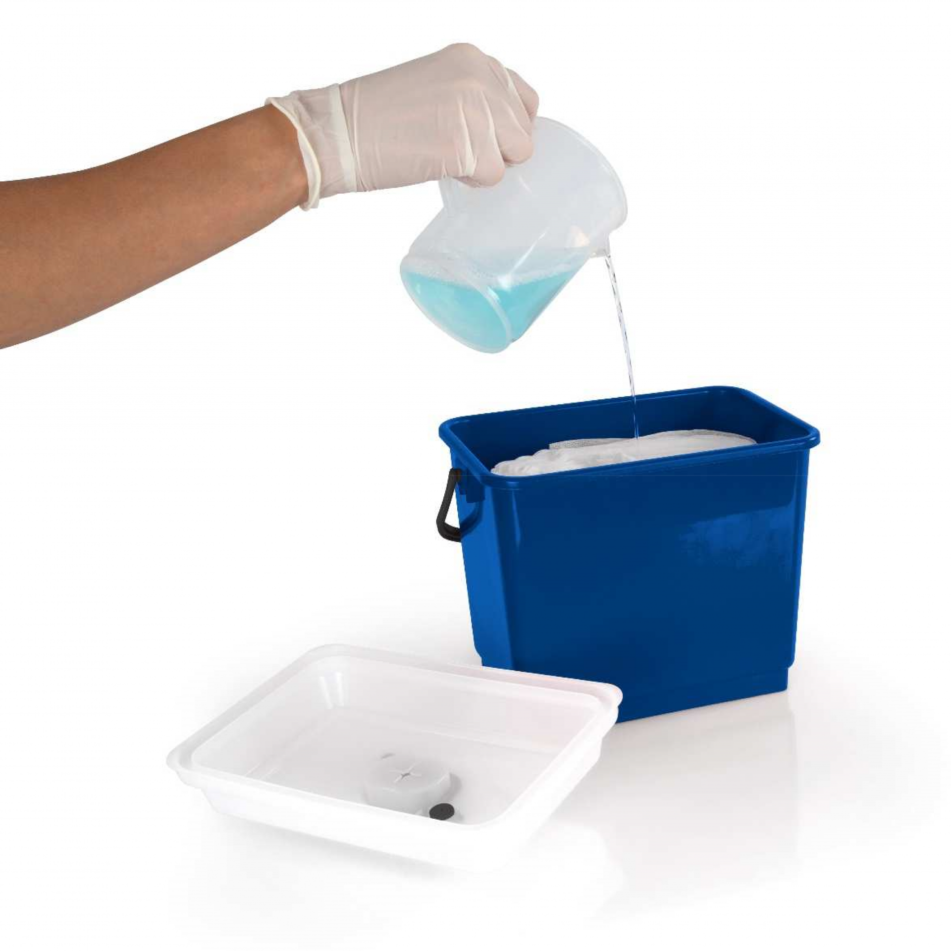Wiadro Mono-Roll System w kolorze niebieskim to innowacyjny, hermetycznie zamykany pojemnik o pojemności 4 litrów, stworzony do optymalnego przygotowania i przechowywania nasączonych ściereczek do dezynfekcji lub czyszczenia powierzchni. Ten element systemu Mono-Roll charakteryzuje się wyjątkową prostotą i wygodą użytkowania, stanowiąc poręczne rozwiązanie znacząco ułatwiające codzienną pracę personelu sprzątającego.