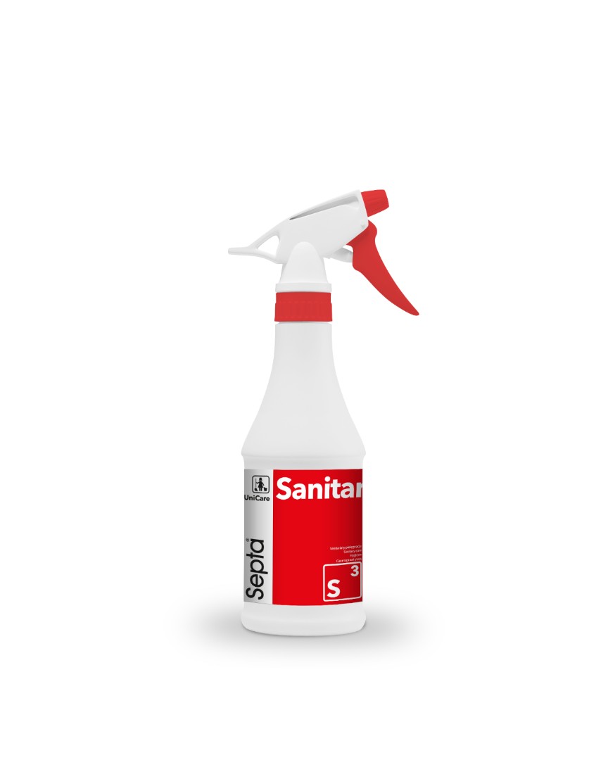 Septa Sanitar S3 to profesjonalna chemia czyszcząca, idealna do codziennej pielęgnacji sanitariatów. Płyn skutecznie usuwa kamień wodny, osady wapienne i naloty rdzy, a także przeciwdziała osadzaniu się kamienia. Septa Sanitar S3 nie powoduje odbarwień, nie pozostawia smug i jest przeznaczony do mycia umywalek, toalet, baterii, powierzchni ceramicznych i glazury. Produkt jest gotowy do użycia.