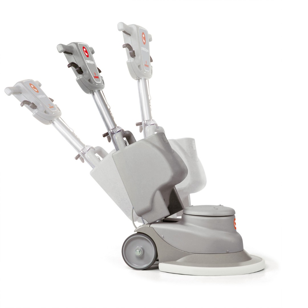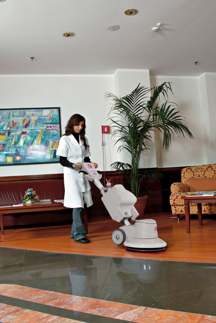 Nacisk bezpośrednio na posadzkę, w połączeniu z silnikiem o dużej mocy, gwarantuje doskonałe wyniki zmywania i polerowania. Możliwość zwiększenia nacisku szczotki poprzez dołożenie obciążenia pozwala na jeszcze większą wydajność czyszczenia. Wyjątkowo wydajny zbiornik o dużej pojemności (15 litrów), który można zamontować bez użycia narzędzi, oraz ruchomy uchwyt z możliwością regulacji, podnoszą komfort użytkowania. Nylonowa skrzynia biegów zapewnia długą żywotność, wysoką niezawodność i cichą pracę.