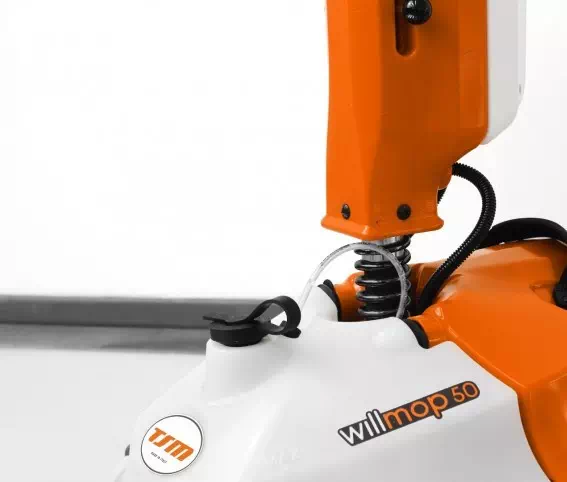TSM WILLMOP 50 pozwala na czyszczenie ponad 2100 m²/h, co jest możliwe dzięki szerokości pracy szczotek (500 mm), pojemnym zbiornikom na czystą (5 l) i brudną wodę (7 l) oraz wydajnemu akumulatorowi litowo-jonowemu, który zapewnia około 1h 15m pracy. Konstrukcja urządzenia umożliwia czyszczenie w trudno dostępnych miejscach, dzięki możliwości sterowania w zakresie 360°. Szorowarka jest idealna do utrzymania czystości w obiektach handlowych, szpitalach, szkołach, restauracjach i lotniskach. Intuicyjna obsługa, możliwość sterowania jedną ręką, osobne zbiorniki na roztwór czyszczący i brudną wodę, łatwo wymienialny akumulator, bezprzewodowe zasilanie, czyszczenie wzdłuż ścian, ssawa minimalizująca rozbrysk wody, sucha posadzka minimalizująca ryzyko poślizgnięć, tryb ECO oraz łatwy transport to tylko niektóre z zalet tego urządzenia. Szorowarka WILLMOP 50 posiada kilka trybów pracy obsługiwanych jednym pokrętłem, a rękojeść wyposażona jest w czujnik dotyku, co zapewnia bezpieczeństwo użytkowania. Urządzenie automatycznie przechodzi w tryb czuwania, gdy operator puści rękojeść.
